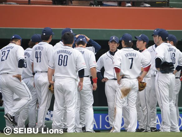 先頭で出塁した片岡の立て続けの盗塁でチャンスを広げましたが、同点のホームを踏むことは出来ませんでした。涌井の立ち直りに期待し、打線も積極的にラズナーを揺さぶって試合を動かしていきたいところです!! |