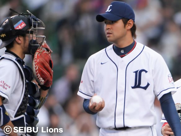 雌雄を決する試合のマウンドに上がったエース・涌井、立ち上がりは制球に苦しんで1点を失いましたが、何とか最少失点でここを凌ぎました!! まだまだ試合は始まったばかり。すかさず打線が反撃を見せて試合をひっくり返し、涌井をもり立てていきましょう!! |