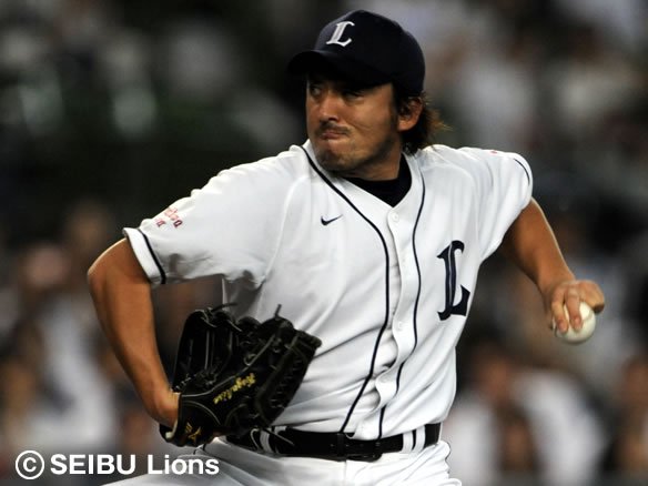 投手 石井一 投手 石井 9番 早坂 右安 初球のアウトコースへのシュートを鋭くたたかれ、前進してきたライト・G.G.佐藤の前にライナーで運ばれてしまった。 |