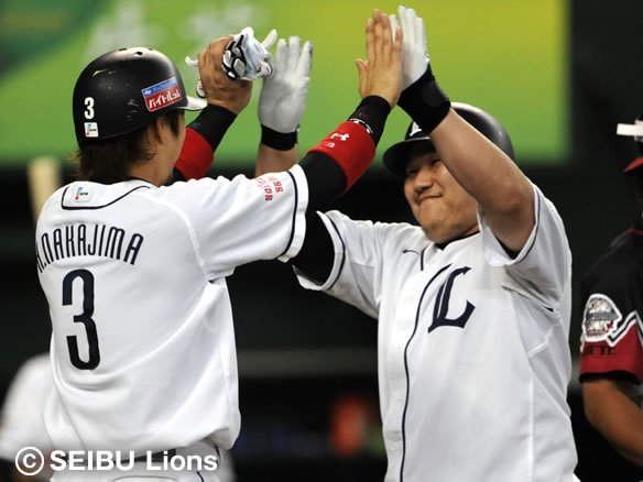4番 中村 左中本 1-0からの高めのスライダーを力強く振り抜くと、打球は高々と美しい放物線を描いて左中間方向へ! 失速することなく、そのままライオンズファンの待つスタンドへと吸い込まれていった!! 中村の今季第45号2ランで、3対11!! さあ反撃!! ![]() 3