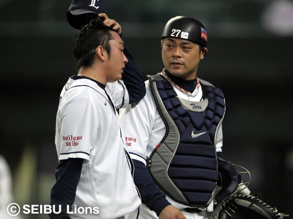 投手 山岸 投手 松永 【埼玉西武選手交代】 ピッチャー・山岸→松永 サード・原→キャッチャー・細川 キャッチャー・上本→ファースト ファースト・石井義→サード ライト・G.G.佐藤→赤田 |
