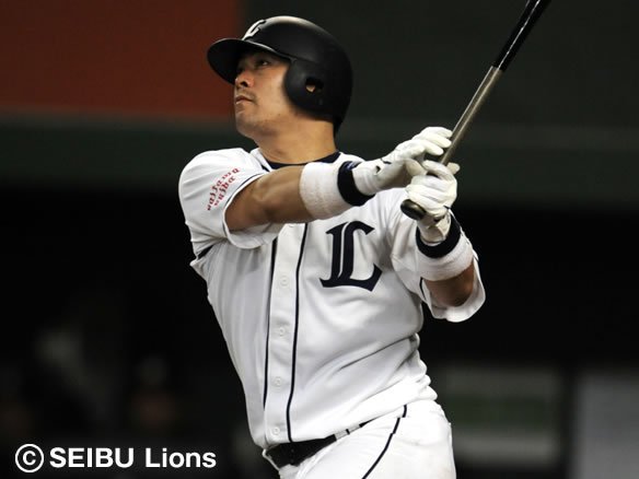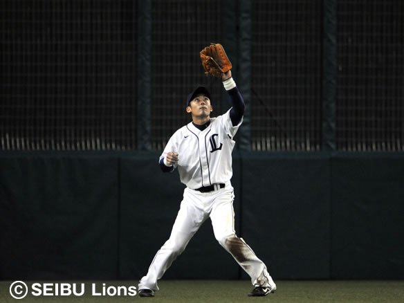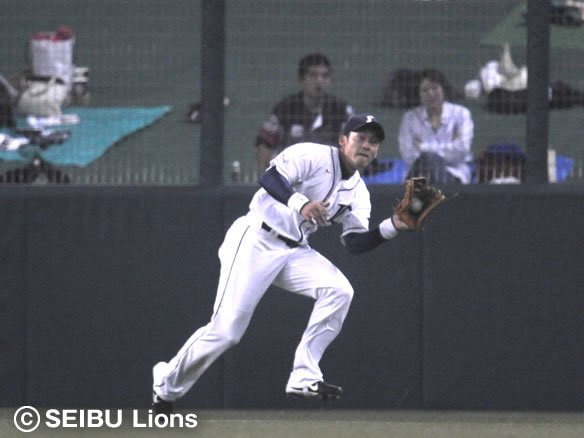6番 G.G.佐藤 左飛 2-0から低めの変化球を力強く引っぱたき、打球はレフト方向への大きな当たりとなったが、フェンス手前まで追っていったレフト・大松にこれをおさえられてしまった。 |