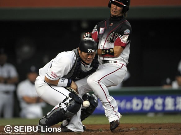 5番 石井 空三振 カウント0-1から1塁ランナー・中島がスタート! キャッチャー・里崎はボールが低めにきた分だけわずかに2塁送球が遅れ、2塁ベースカバーのショート・西岡のタッチをかわしてセーフ! 盗塁成功! |