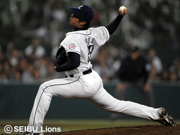 投手 許 投手 ミンチェ 6番 里崎 右安 初球のアウトコースへの変化球を逆らわずに弾き返され、鋭い打球をライトへ運ばれてしまった。 |