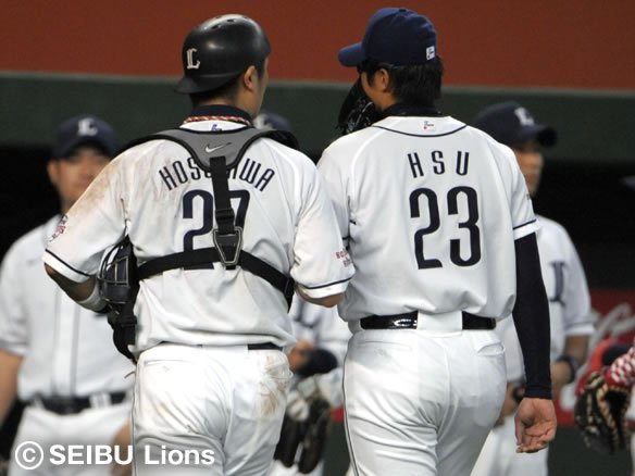 先発の許は、ここでマウンドをリリーフ陣に託します。ここまで5回2/3を投げて126球、被安打9、奪三振4、与四球4という内容でした。 |
