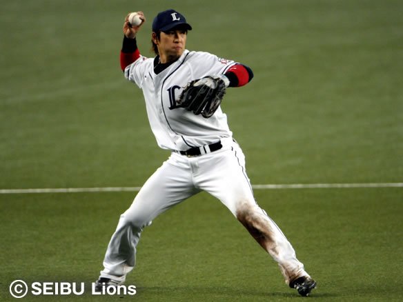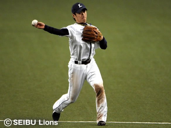 投手 小林宏 6番 G.G.佐藤 一ゴ 1-1からインコース高めへのストレートに詰まらされてしまい、力なく飛んだ打球をファースト・福浦に正面でゆっくりとおさえられ、そのまま1塁ベースを踏まれた。 |