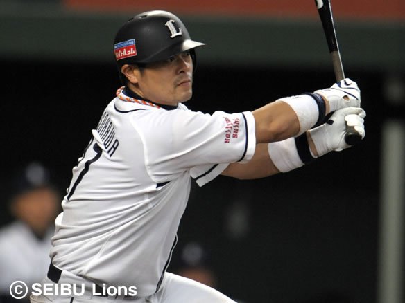 6番 G.G.佐藤 空三振 2-0からアウトコース低めへの変化球にバットが回ってしまった・・・。 |