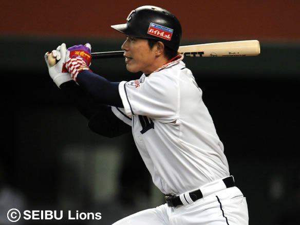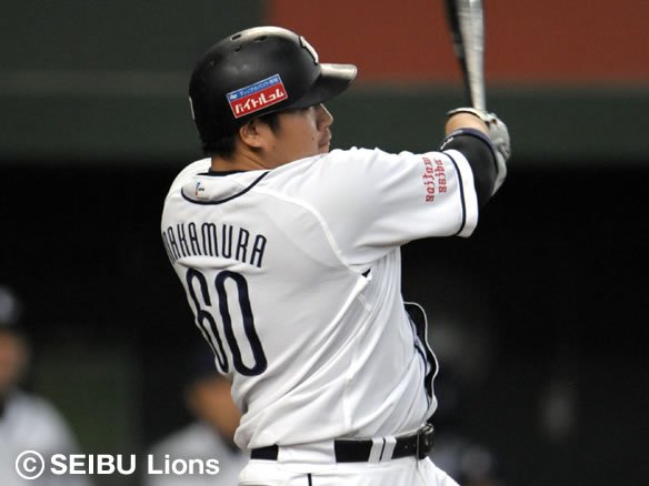 3番 福浦 右安 0-1からの低めのカーブにバットを合わされ、打球はワンバウンドでライト・G.G.佐藤の前に落ちた。 |