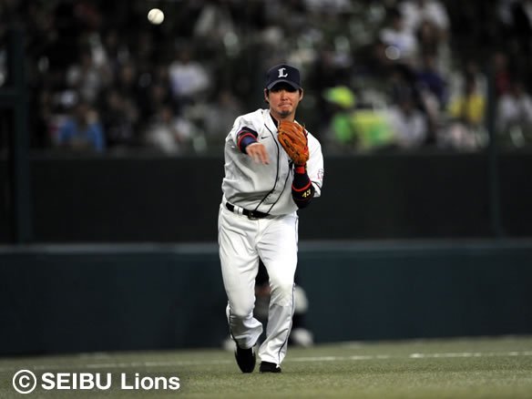 投手 渡辺 2番 栗山 遊ゴ 初球のアウトコースへのシンカーを鋭くたたいたが、三遊間への打球をショート・西岡に滑り込みながらおさえられ、丁寧に1塁へ送球された。 |