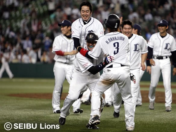 投手 渡辺俊 最後の最後に、劇的なドラマが待っていました!! クリーンアップからの攻撃でチャンスを作ると、大歓声の後押しを受けたG.G.佐藤の一打で、見事な逆転サヨナラ勝ち!! 今季のホーム最終戦を白星で終えることが出来ました!! これで連敗を4でストップしたライオンズは、明後日から仙台へ乗り込んで3位・イーグルスとの直接対決を迎えます。その後も首位・ファイターズとの3連戦と続き、クライマックスシリーズ進出の切符を求め、北へと向かいます。しかし、この大歓声を力にしたライオンズには、もう恐れるものは何もありません! これで西武ドームでのレギュラーシーズンは最後となりましたが、必ずクライマックスシリーズを勝ち抜いて日本シリーズへ進出し、一回り成長した姿を西武ドームで見せてくれることでしょう。全てのライオンズファンのため、何としても明後日からの5連戦を戦い抜きましょう!! |