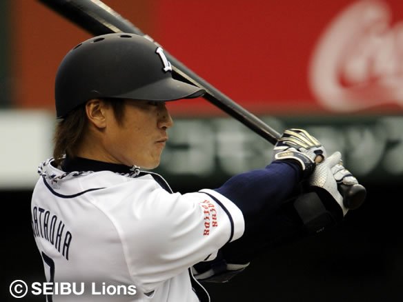 投手 帆足 1番 西岡 右安 2-2から6球目のアウトコース高めのパームをおっつけて打たれてしまい、ライト・星の前に運ばれてしまった。 |