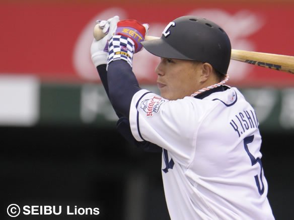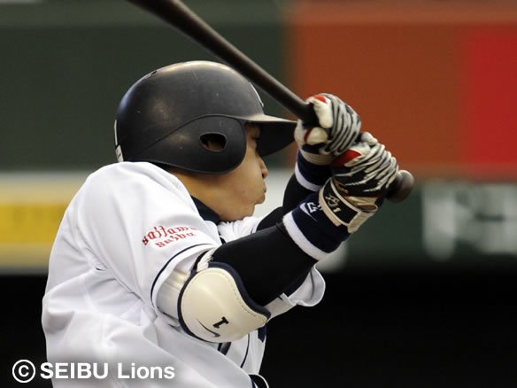 6番 G.G.佐藤 左飛 1-2から低めの変化球を引っ張るも打球に勢いはなく、レフト・大松がウォーニングゾーン手前でキャッチ。 |