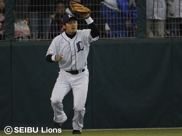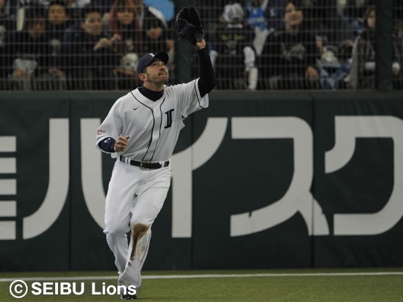 高々と上がった打球をG.G.佐藤がしっかりとキャッチ