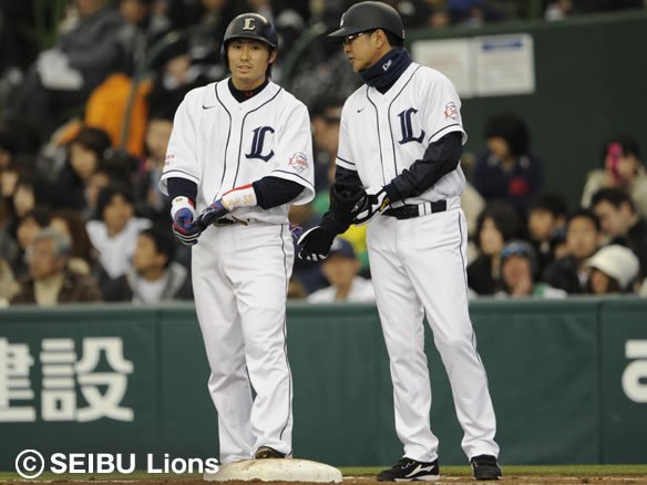1番 西岡 左越三 1-0からアウトコース高めのカーブを上手く合わされた。やや鋭い打球をレフト・G.G.佐藤が追いかけるも、レフト線際に落ちてフェンスに当たった。転がったボールをセンター・栗山が拾っている間に2塁ランナー・里崎、1塁ランナー・今江がそれぞれホームイン。1対7。打った西岡も一気に3塁へ。 ![]() 1