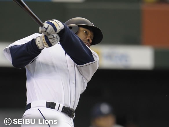 6番 G.G.佐藤 空三振 2-2からアウトコース高めのスライダーにタイミングを外されてしまった・・・。 |