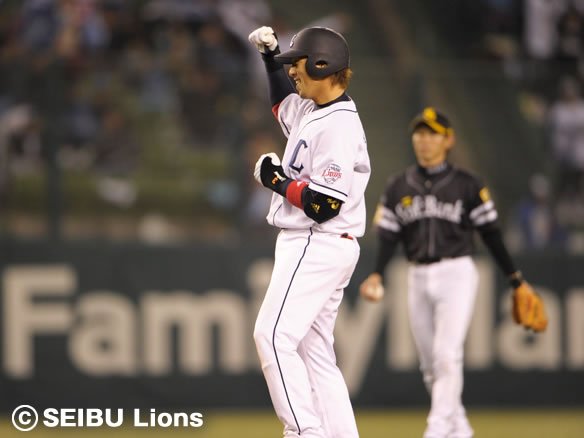 獅子はまだ暴れ足りません! 無死1塁から代打で登場したプロ初打席の浅村が、プロ初ヒット初打点となるタイムリーを放ち、2死から栗山がタイムリーヒットを放って9対3と大きく突き放しました! あとは3つのアウトを奪うのみ!! |