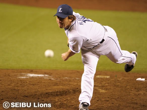 5番 ブラウン 右飛 2-1からインコース低めのチェンジアップを打ち上げてしまい、高く上がった打球はライト・多村に落ち着いてキャッチされた。 |