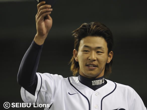 6番 李ボム浩 左飛 1-0からインコース低めの変化球を高々と打ち上げさせ、打球はレフト・G.G.佐藤がほぼ定位置で捕球。 |
