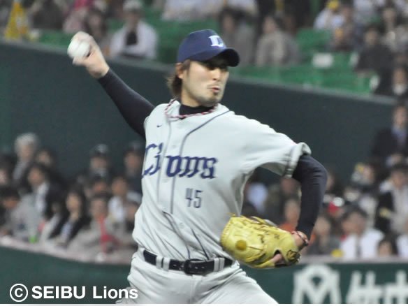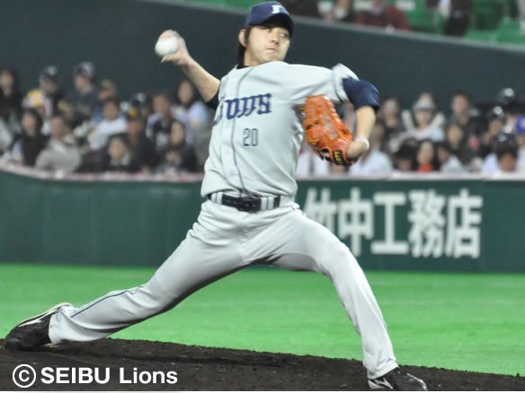 8番 柴原 左飛 フルカウントからアウトコース低めのスライダーを打ち上げさせ、フラフラと上がった打球はレフト・佐藤が落ち着いて捕球。投球と同時にスタートした1塁ランナー・李ボム浩はあわてて1塁に戻った。 |