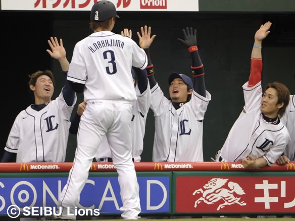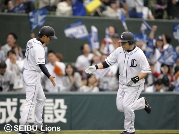 先頭の中村の9号ソロで先制すると、動揺するイーグルス先発・戸村の甘い球を続くブラウンも見逃さないで2者連続、自身2試合連続となる6号ソロを放って2点を先制しました! 西口の小躍りするような躍動感あるピッチングに期待したいところ! |
