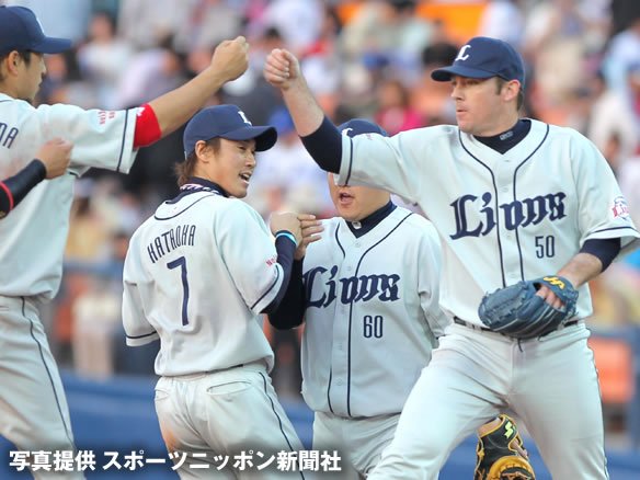 先頭の片岡が2打席連続の2ベースヒットで出塁すると、続く栗山がライトへ2ランホームランを放ち逆転に成功! さらに、中村の2試合連続11号ソロホームランで3対1としました! 帆足の尻上がりに調子を上げるピッチングに期待し、次の攻撃ではベイスターズを突き放していきましょう! |