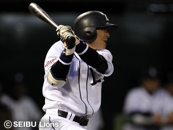 4番 中村 左安 1-1から、アウトコース低めのフォークを打ち返すと、痛烈な打球がレフト・福地の前でワンバウンドした! 中島、中村の連打で先制点のチャンス! |