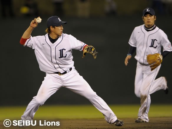 4番 デントナ 遊ゴ 1-2からアウトコース低めのカーブを打たせ、打球は二遊間へ。これをショート・中島がさばき1塁へ送球。送球が本塁側に少しずれるも、ファースト・石井義が落ち着いて処理しデントナに直接タッチ。 |