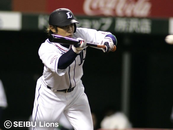 9番 細川 投バ併 初球、インコース低めのカーブをバントすると、打球はピッチャー・石川の前へ。石川が処理して2塁へ送球し1塁ランナー・G.G.佐藤はフォースアウト。さらに1塁へも転送され、こちらもアウトになってしまった。送りバント失敗。 |