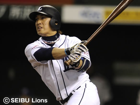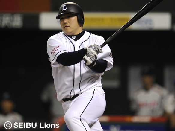 8番 G.G.佐藤 四球 フルカウントからの6球目、インコース低めのストレートを見極めた! 逆転のランナーが1塁へ! |