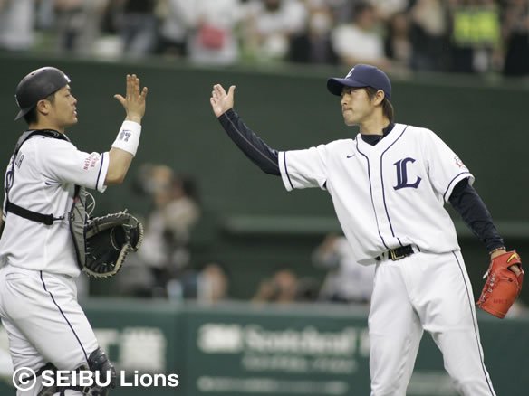 先発の帆足はここでマウンドをリリーフ陣に託します。7回2/3を投げて126球、被安打5、奪三振9、与四死球4という内容でした。 |
