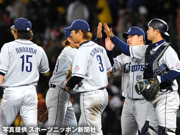 1死2,3塁と一打同点のピンチでしたが、後続を断ち切り無失点で切り抜けました! 粘りを見せた涌井に応えるためにも、1番からの好打順で追加点を奪いたい! |