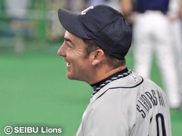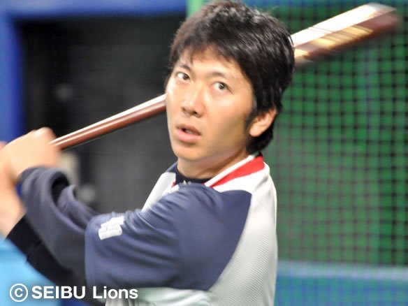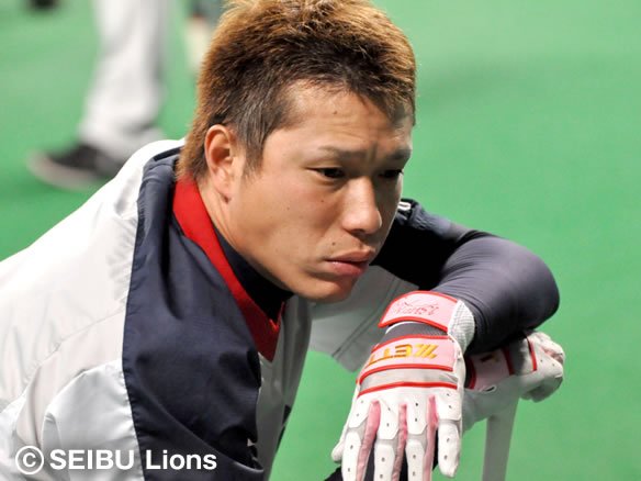 7番 G.G.佐藤 空三振 2-1からの4球目、大きく曲がるカーブにタイミングを外されてしまった・・・。 |