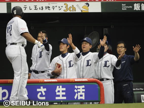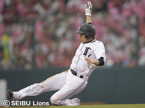 先頭の片岡がフォアボールで出塁すると大島のヒットでチャンスを広げ、中島のタイムリー、ブラウンの犠牲フライで2点を先制しました! 援護をもらった帆足の快投に期待したい! |
