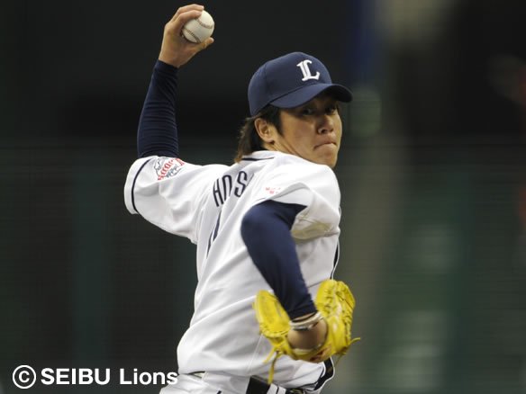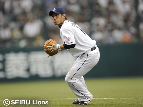 投手 帆足 4番 ヒューバー 遊ゴ 2-2からインコース高めのパームボールを引っ掛けさせ、力なく転がった打球はショート・中島が前進してさばいた! |