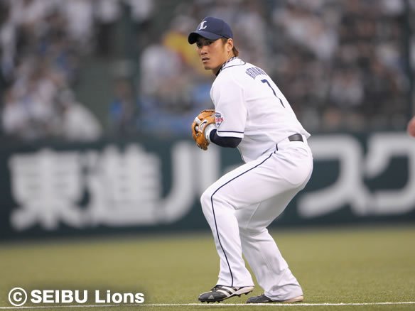 天谷の打球を捌くセカンド・片岡