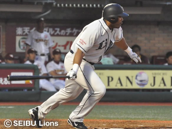 4番 ブラウン 右安 2-1からインコース低めのフォークをすくい上げた打球は、ライト・鉄平の前で弾んだ! 3塁ランナー・栗山が還り1対0! ライオンズが先制! 1塁ランナー・中島は一気に3塁を陥れた! ![]() 0