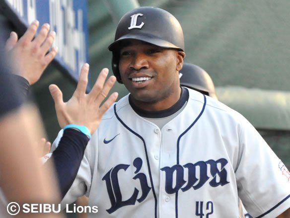7番 高須 左翼二 1-1からインコース高めのストレートを引っ張られ、打球はワンバウンドでフェンスに到達。レフト・G.G.佐藤がクッションボールを素早く処理して内野に返すも、1塁ランナー・ルイーズは3塁に到達。打った高須にも悠々と2塁を陥れられてしまった。 |