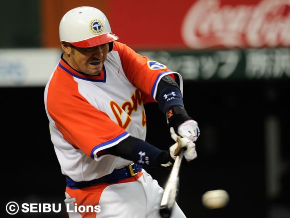 4番 カブレラ 左飛 初球からインコース高めのスライダーを打ち上げ、フラフラと上がった打球はレフト・G.G.佐藤が左中間に寄って捕球。 |