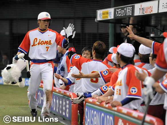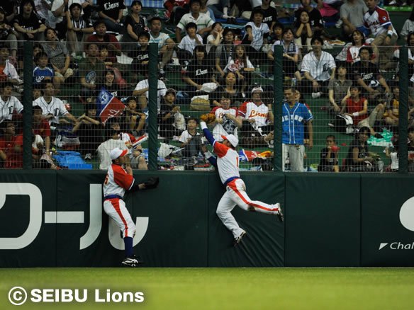 反撃を見せたい打線は、G.G.佐藤からソロホームランが飛び出すと、原の3ベースでチャンスを広げ、代打・上本がタイムリー2ベースを放って2点を返しました! 流れはライオンズに来ています! |