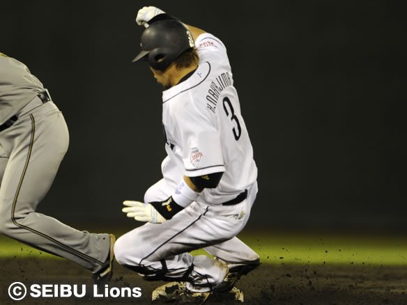 5番 G.G.佐藤 四球 1-3からアウトコース低めの変化球を見極めた! 勝ち越しのランナーが出塁! |