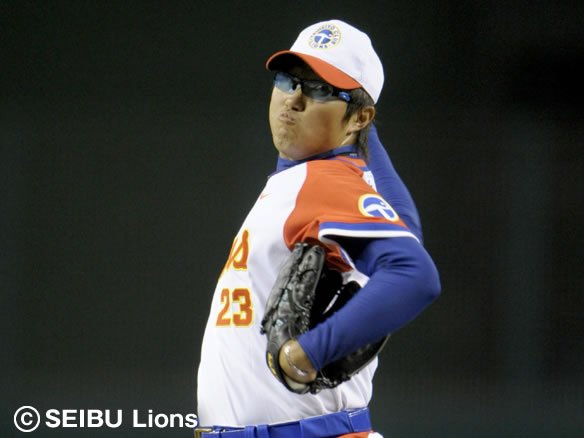 投手 許 投手 ミンチェ 9番 金子誠 中安 フルカウントからの8球目、アウトコース低めのスライダーをセンター前へ弾き返された。 |