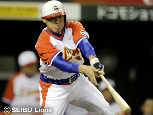 投手 榊原 3番 栗山 二ゴ 初球、高めのストレートを打ち損じてしまい、セカンド・田中賢が正面に入って捕球し、1塁に送球。 |