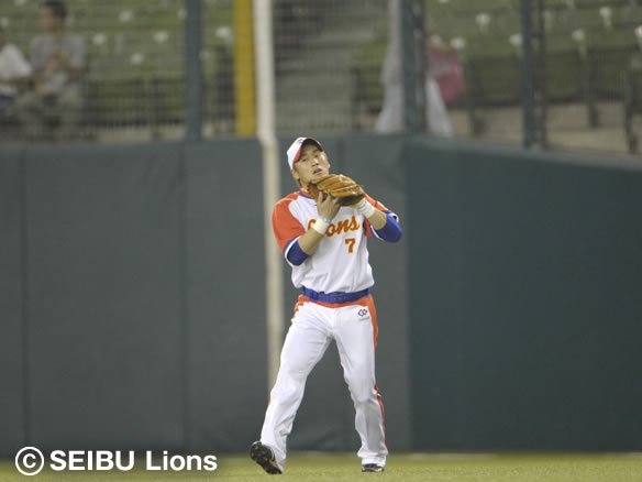 9番 金子誠 右飛 2-2から高めのストレートを打ち上げさせ、ライト・星が前進してキャッチ! |