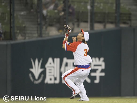 3番 栗山 左邪飛 1-2からアウトコース低めのスライダーを逆方向に打ち返すも、弱いフライとなってしまい、やや左に詰めていたレフト・村田が最後はレフト線をまたいでファールゾーンでキャッチ。 |