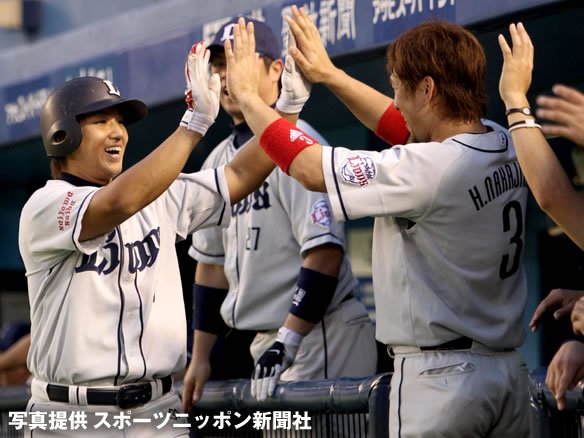 投手 成瀬 6番 フェルナンデス 左本 初球、アウトコース高めのスライダーを振り抜くと打球は、切れることなく、レフトポールを巻いていった! ライオンズ復帰後初ホームランで1対0! ![]() 0