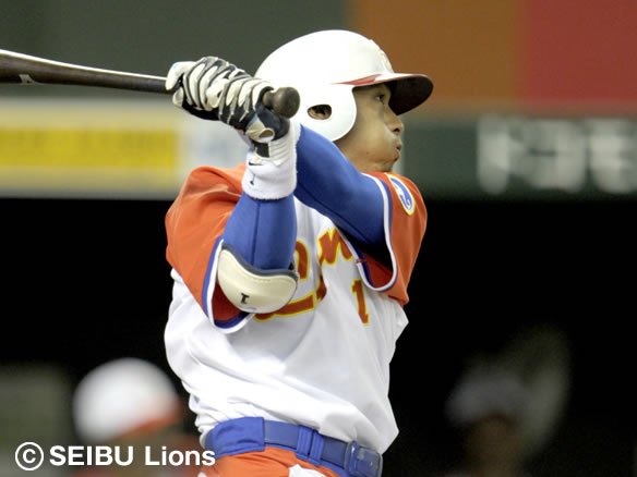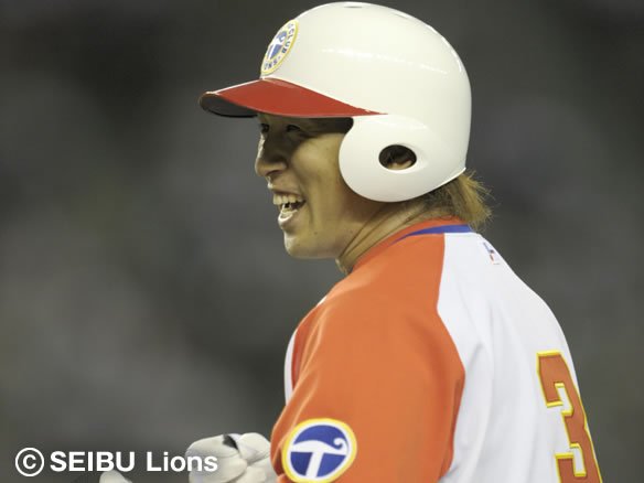 4番 中島 中安 1-3からインコース高めのシンカーを振り抜くと鋭いライナーが二遊間を抜けていった! 2塁ランナー・栗山は打球が抜けたのを確認してから、スタートを切ったため3塁でストップ。 |
