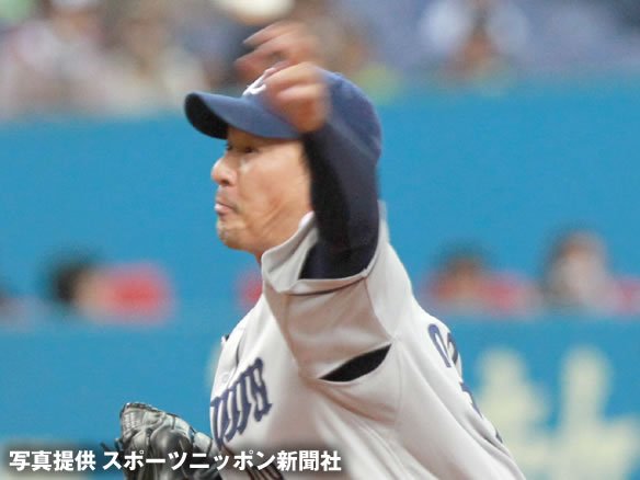 7番 バルディリス 右飛 1-1から真ん中高めのストレートを打ち上げさせ、力のないフライとなった打球はライト・佐藤が追いついて捕球した。2塁ランナー・北川は動けず。 |