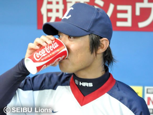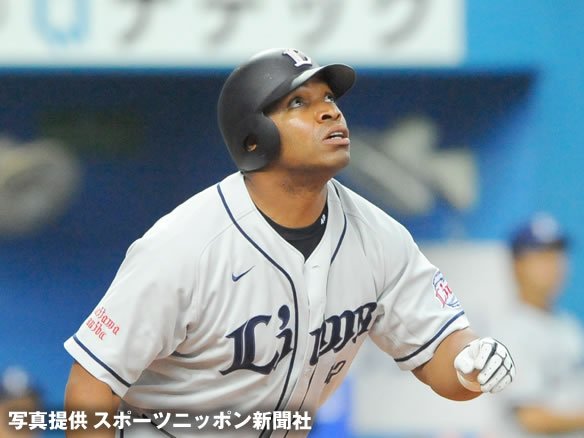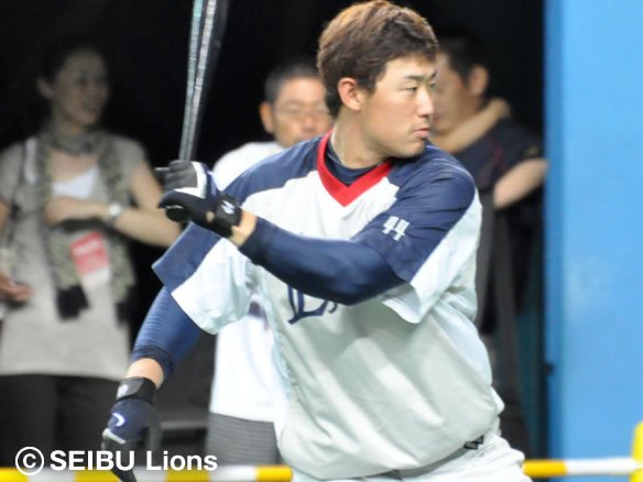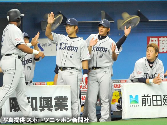 4番 カブレラ 左犠飛 初球、シュート回転したストレートを引っ張られ、糸を引くような当たりとなった打球はレフト方向に飛び、レフト・佐藤が快足を飛ばしてランニングキャッチ。その間にタッチアップで3塁ランナー・森山が還り0対2。 ![]() 2