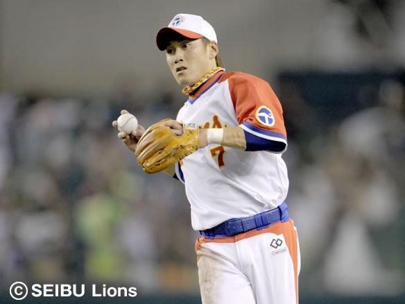 5番 多村 左中本 0-1から高めのスライダーを打ち返された打球はグングンと伸びてしまい、レフト・佐藤、センター・栗山はフェンス越しに打球を見送ってしまった。多村の18号2ランで5対2。 ![]() 5
