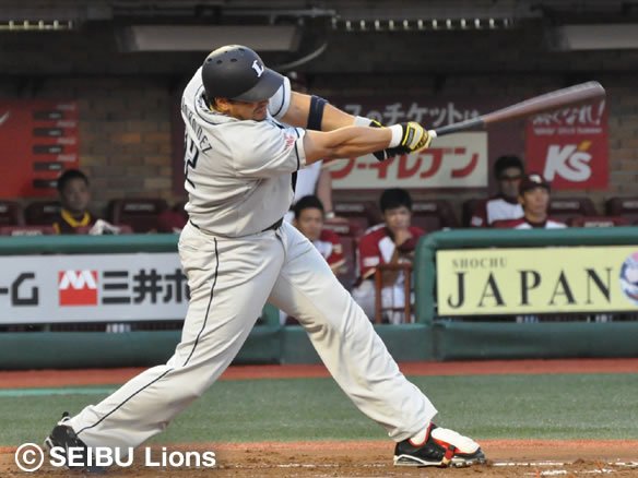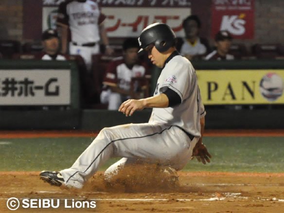 先頭・中島が5試合連続安打となるヒットやイーグルスのまずい守備を突くなどして、前の打席で代打出場していた石井義のタイムリ2ベースヒットで点差を「2」としました! |